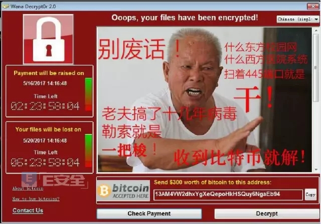 以下是E安全根據(jù)各媒體報道以及朋友圈、微博等消息整理的關于這次勒索病毒襲擊事件的相關內容以及防護建議。