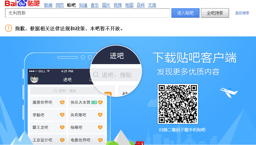 為此,亮鍵電子員工試著在百度貼吧內(nèi)搜索“尤利西斯”后,出現(xiàn)了提示抱歉,根據(jù)相關法律法規(guī)和政策,本吧暫不開放。