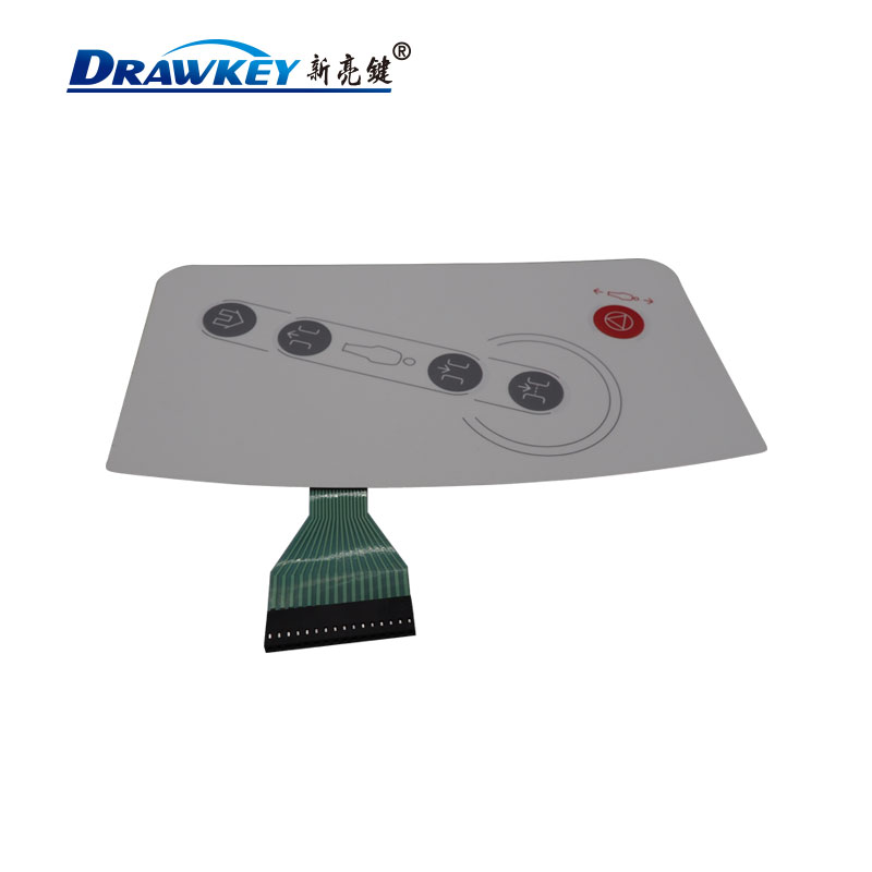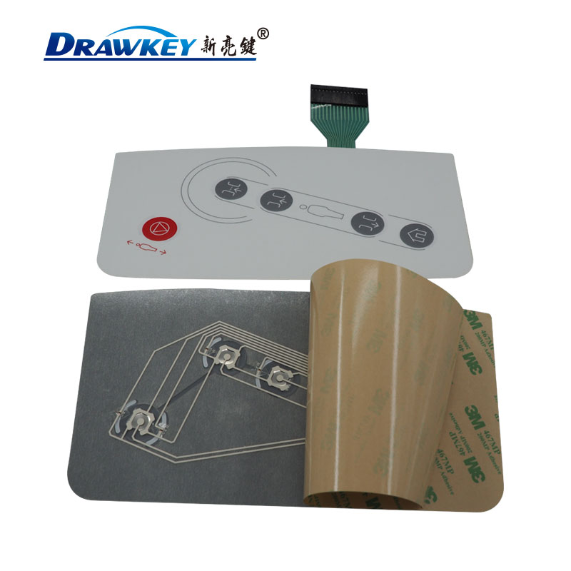薄膜開關(guān)制作撕掉離形紙,就可以牢固地粘貼在整機(jī)表面,起引出線插入整機(jī)后裝置電路的插座上,瞬間便可接通電路。省工、省料降低了整機(jī)的配套成本。
