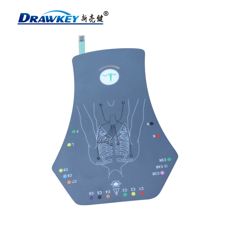 防水醫(yī)療薄膜開關(guān)在色彩和圖案的設(shè)計(jì)上體現(xiàn)個(gè)性化,在裝飾效果上體現(xiàn)出材質(zhì)美、裝飾美、工藝美的綜合特征。