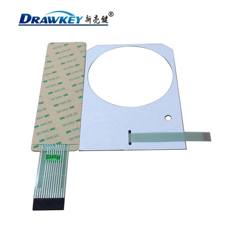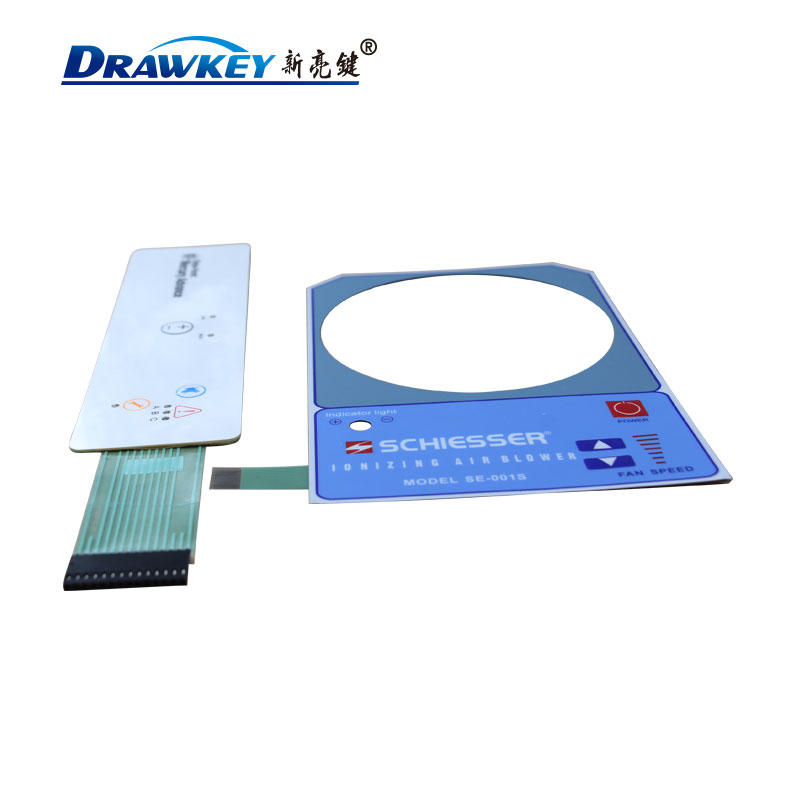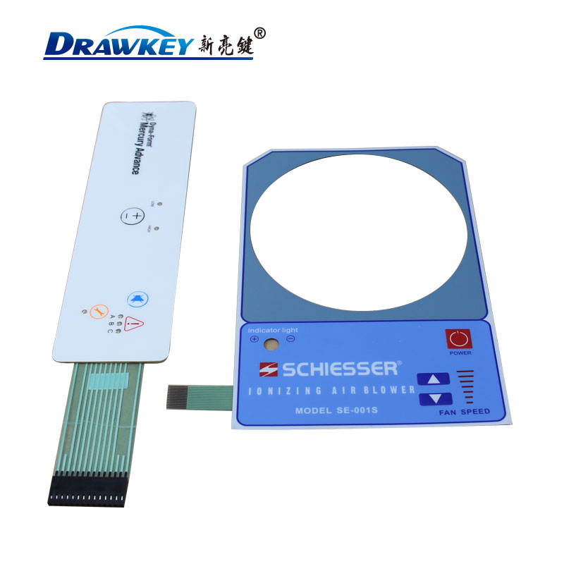 薄膜數(shù)字按鍵撕掉離形紙,就可以牢固地粘貼在整機(jī)表面,起引出線插入整機(jī)后裝置電路的插座上,瞬間便可接通電路。省工、省料降低了整機(jī)的配套成本。