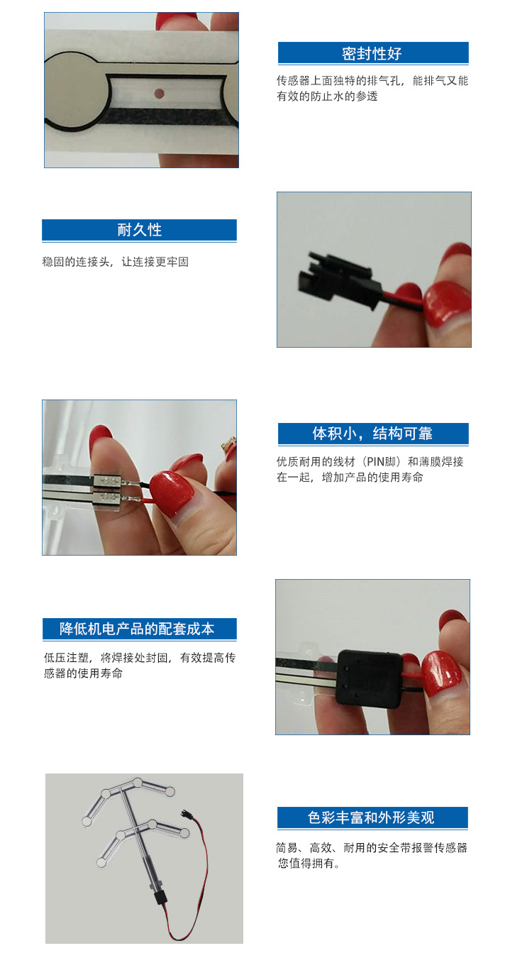 應(yīng)用于汽車座椅乘員感知系統(tǒng)和兒童座椅,如汽車座椅語音提醒裝置、辦公座椅、氣囊感應(yīng)裝置、駕駛員離座的情形和兒童座椅安全報警器、等。