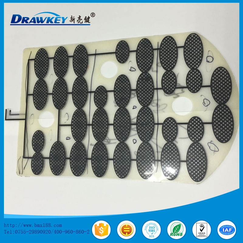 • 使用PET 印刷銀線、碳線,形成薄膜開關(guān)按鍵。電阻值小于100Ω。符合ROHS標(biāo)準(zhǔn)。