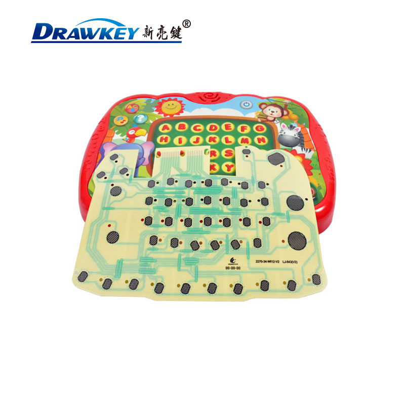 - 產(chǎn)品說明: 1.適用于益智類兒童玩具 2.0.1mm厚PET印刷銀線路,跳線。覆蓋UV 保護(hù)線路氧化 3.工藝可印刷0.05~0.1mm 高凸點(diǎn)、碳點(diǎn),滿足客戶按鍵手感。 4.此產(chǎn)品為單面,印刷3M背膠。信賴性溫濕度保存實(shí)驗(yàn)條件:-20~85℃