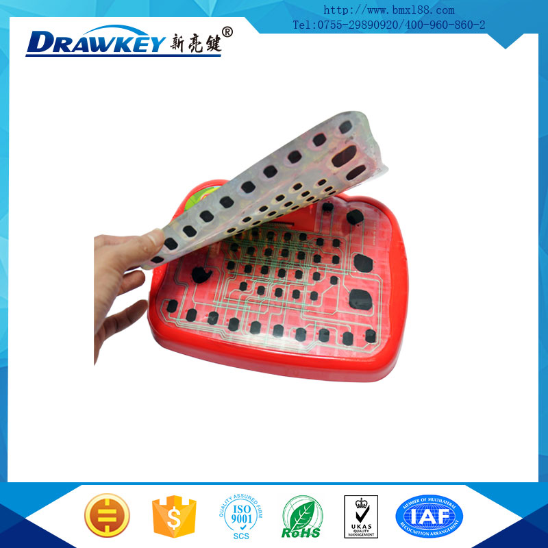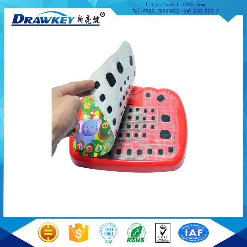 玩具開關(guān)線路印刷采用高精度絲網(wǎng)印刷,精密模具沖型,保證良好的電器性能。