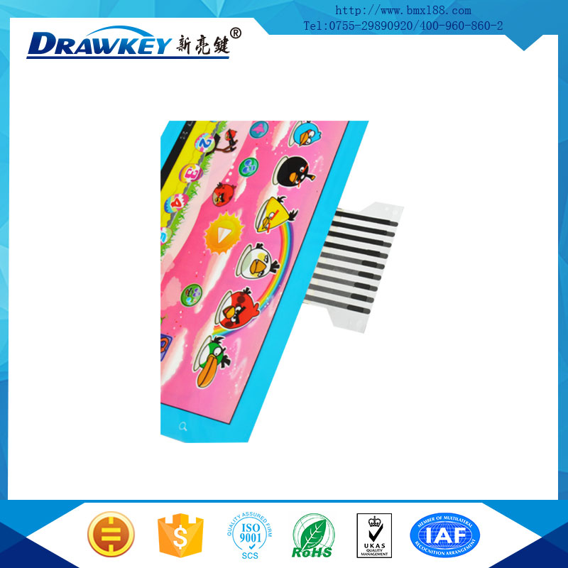 玩具碳膜片就是采用PET薄膜,PC薄膜將導(dǎo)電銀漿,導(dǎo)電碳漿根據(jù)客戶的IC矩正而畫好的圖紋通過絲網(wǎng)印刷出來的產(chǎn)品:主要用于防水,防油污,超薄的一些產(chǎn)品上面,如防水鍵盤,機(jī)器用薄膜開關(guān),薄膜天線,玩具學(xué)習(xí)機(jī),玩具早教機(jī)上面。