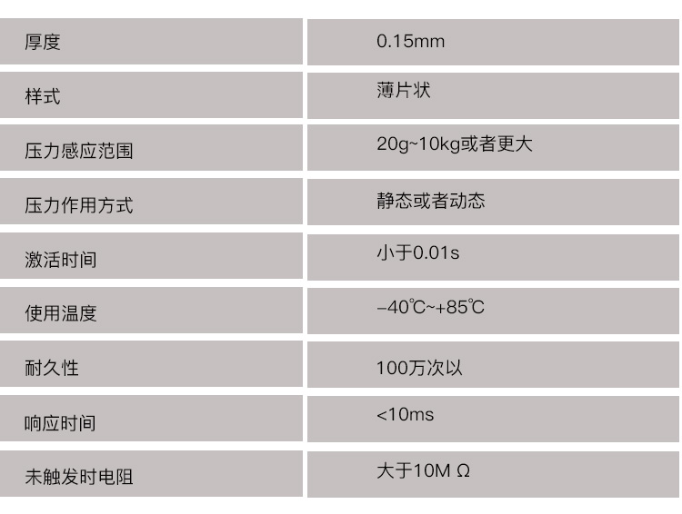 微型壓力傳感器該傳感器是具備超薄、柔性、耐用、超低功耗、極速響應(yīng)、薄膜型、壓力觸發(fā)、壓力檢測(cè)范圍廣和易于集成等特性,使其實(shí)現(xiàn)對(duì)壓力高靈敏檢測(cè),并幫助人與設(shè)備的交互更順暢,助力創(chuàng)新智能產(chǎn)品節(jié)約成本、縮短產(chǎn)品上市時(shí)間。