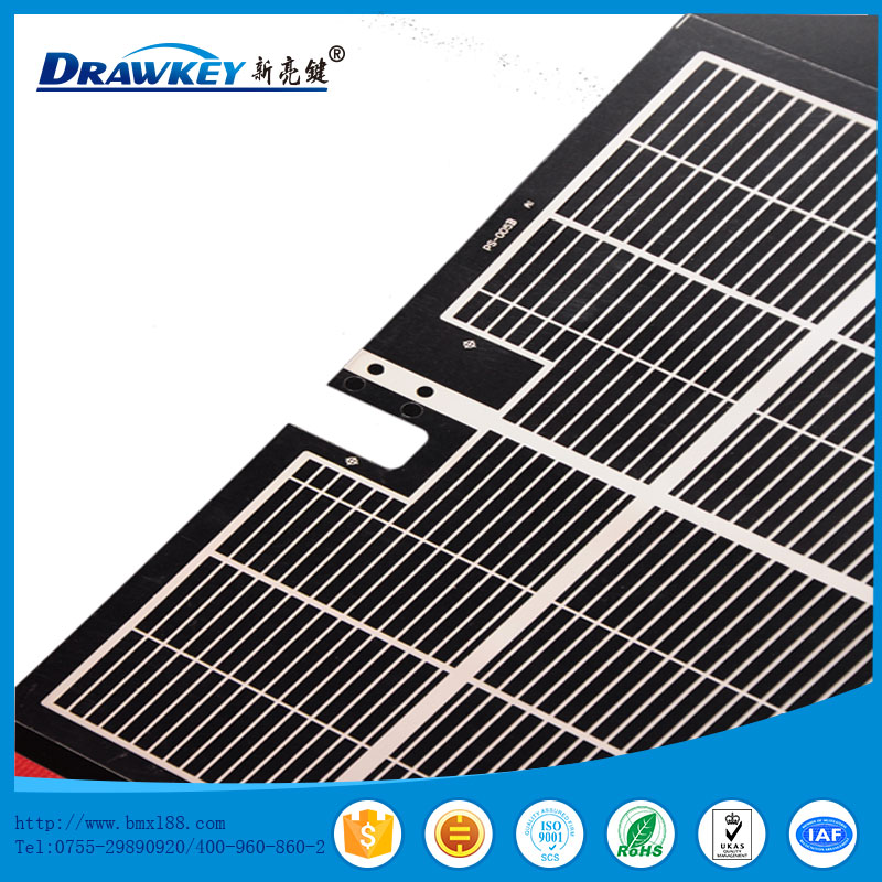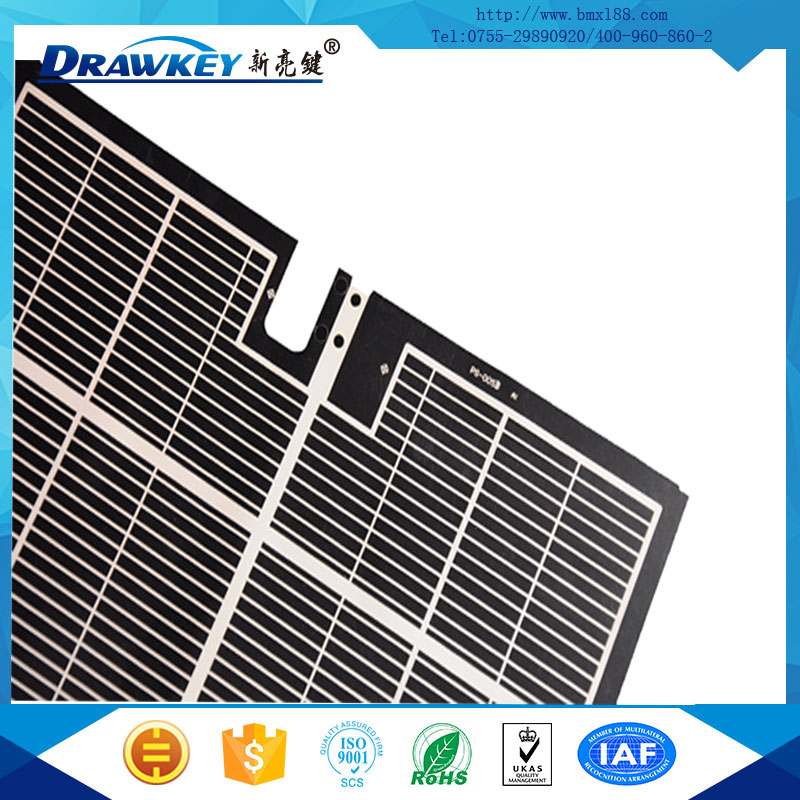 使用PET 印刷銀線、碳線,形成薄膜開關(guān)按鍵。電阻值小于100Ω。符合ROHS標準。
