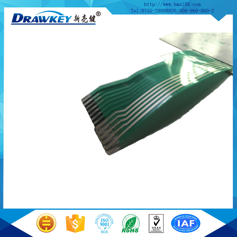 智能化薄膜開關是近年來流行的一種集裝飾性與功能性為一體的文字標記,商標。在PVC、PC、PET等柔性塑膠材料上印刷既定的圖形、文字說明、透明窗等,粘貼上不同類型的雙面膠,制作而成的用于起標識和保護作用的塑膠制品。智能化薄膜開關外形美觀,圖文清晰,密封性好。